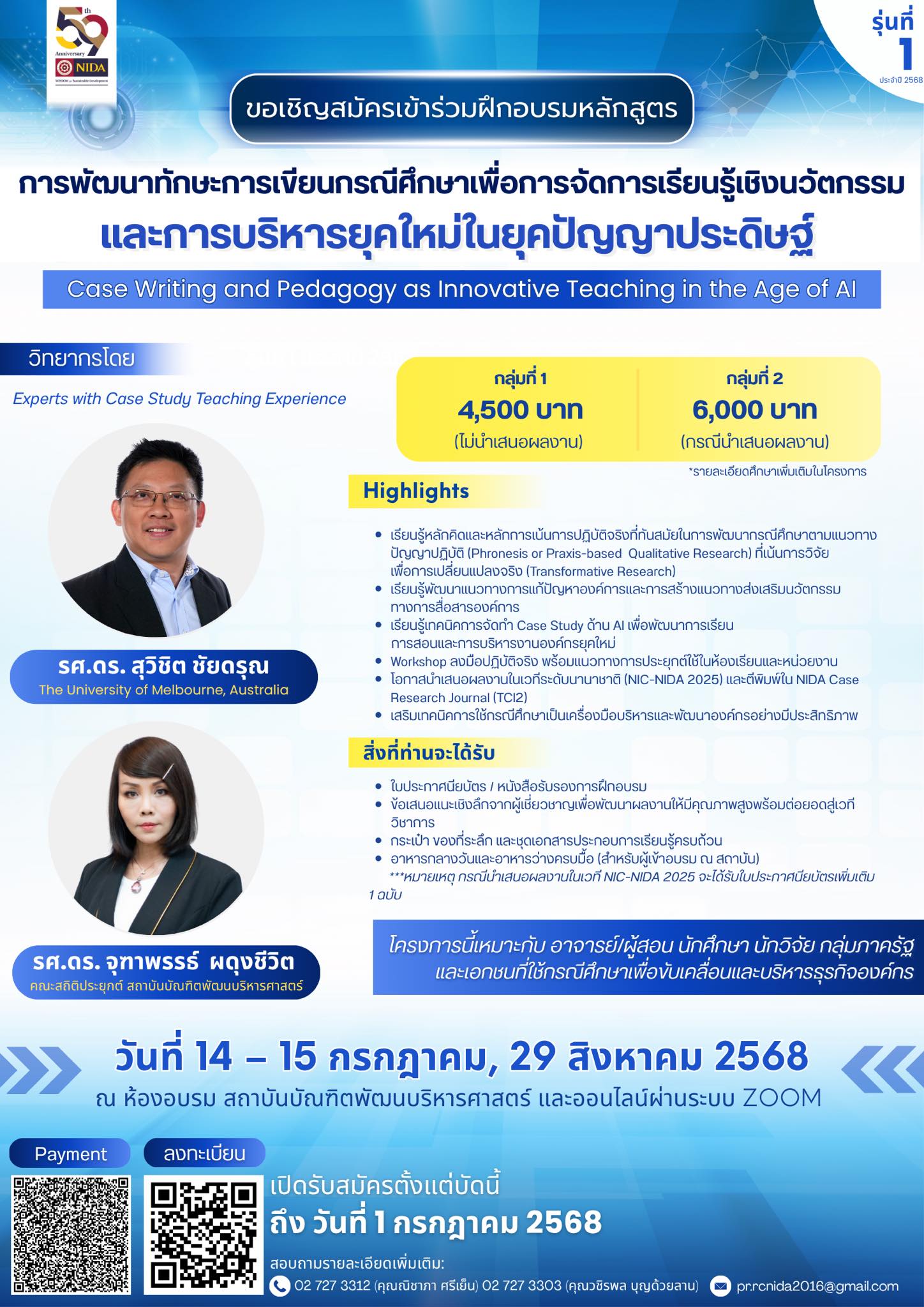 📍 สถานที่อบรม NIDA และออนไลน์ผ่าน ZOOM (บางกิจกรรม)