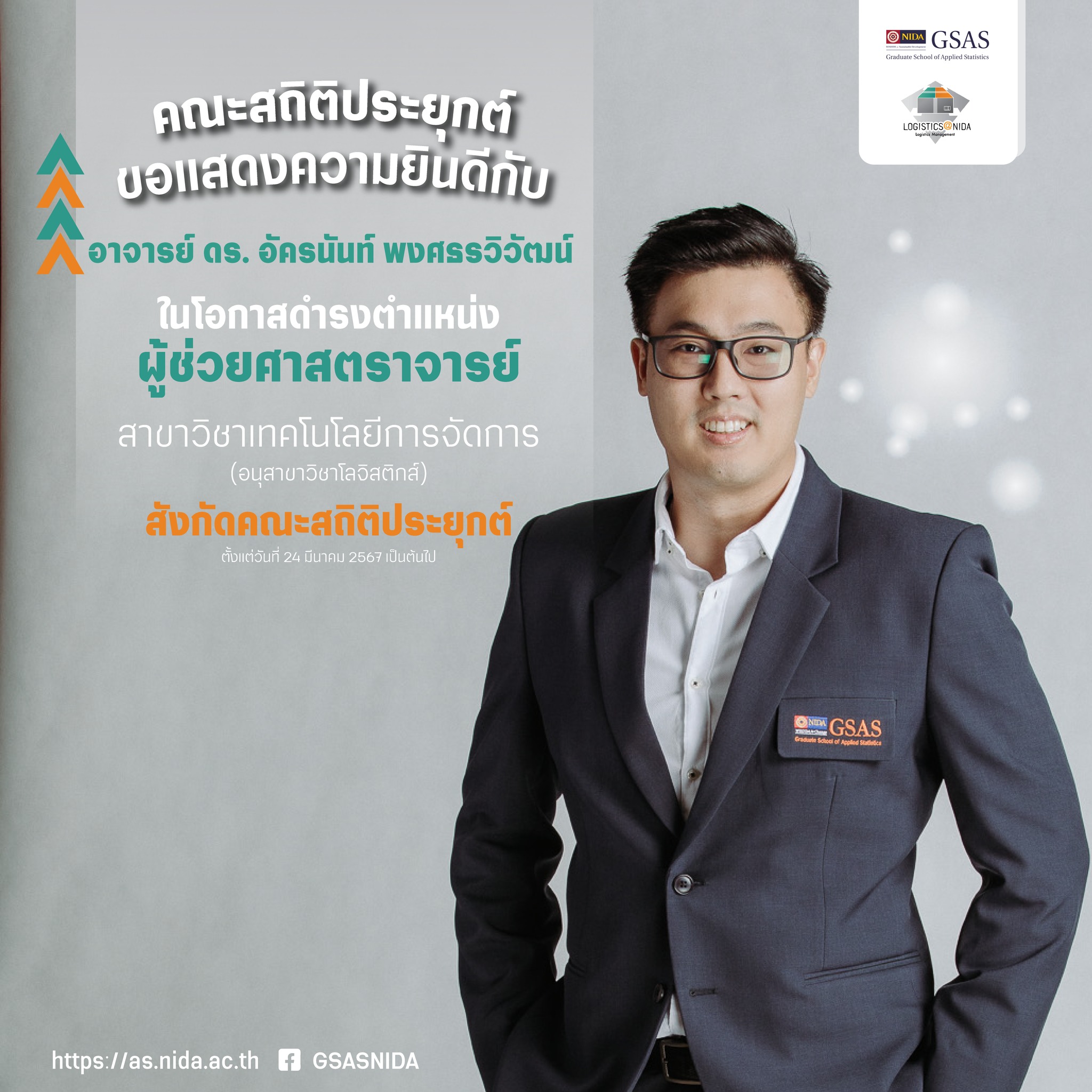 คณะสถิติประยุกต์ ขอแสดงความยินดีแด่ “อาจารย์ ดร. อัครนันท์ พงศธรวิวัฒน์”