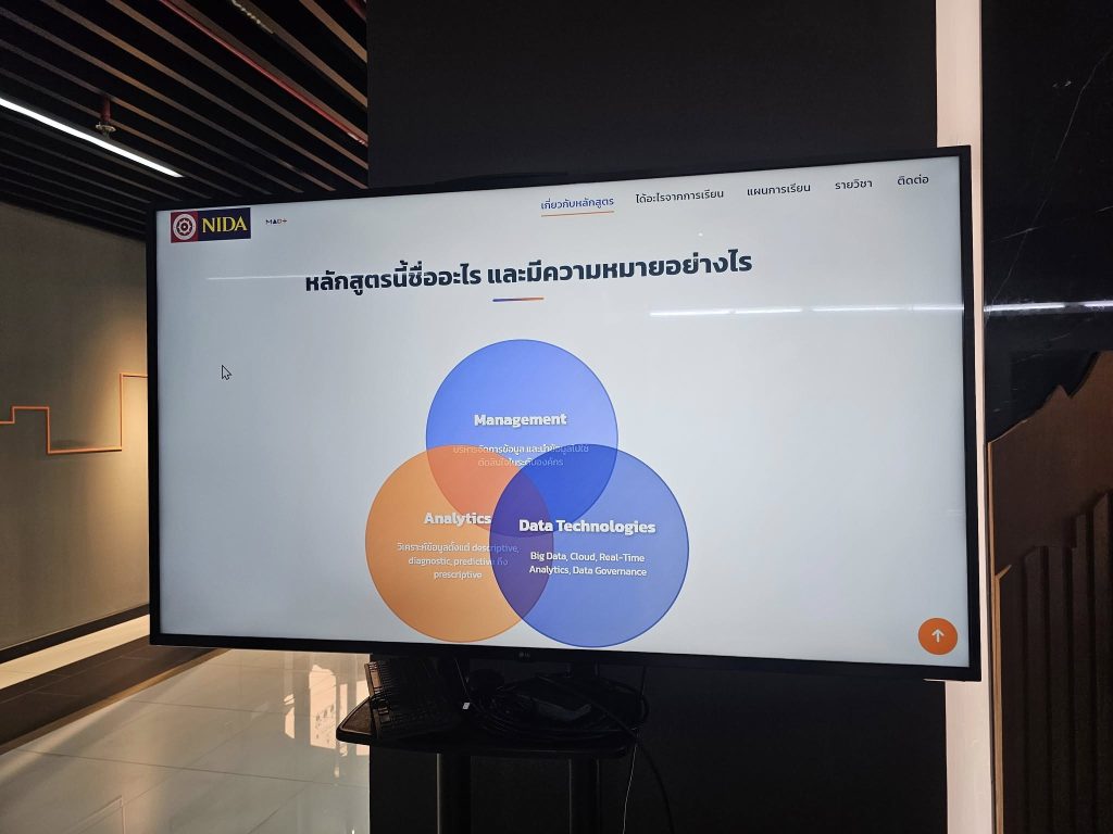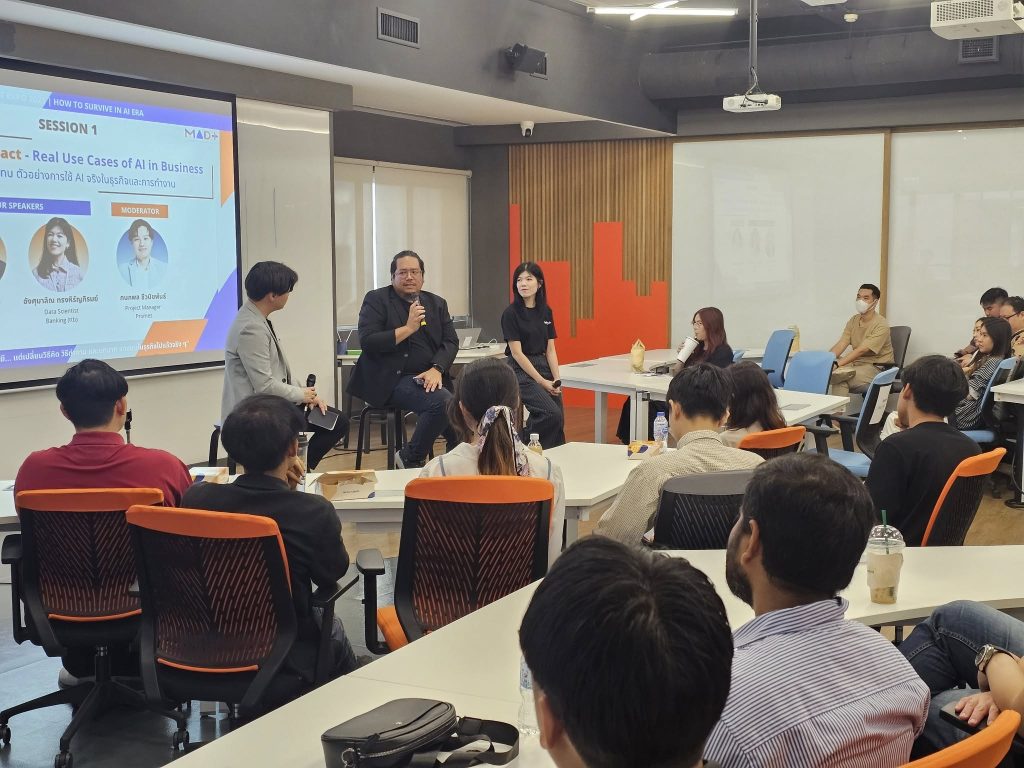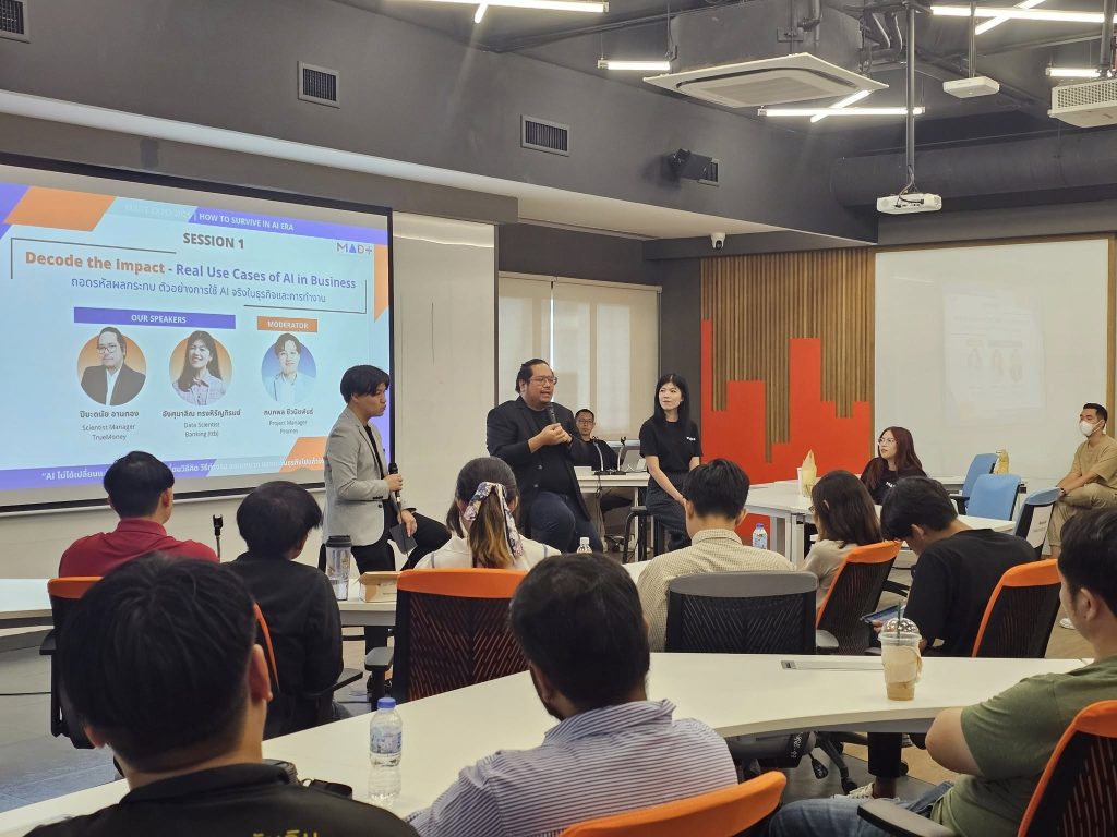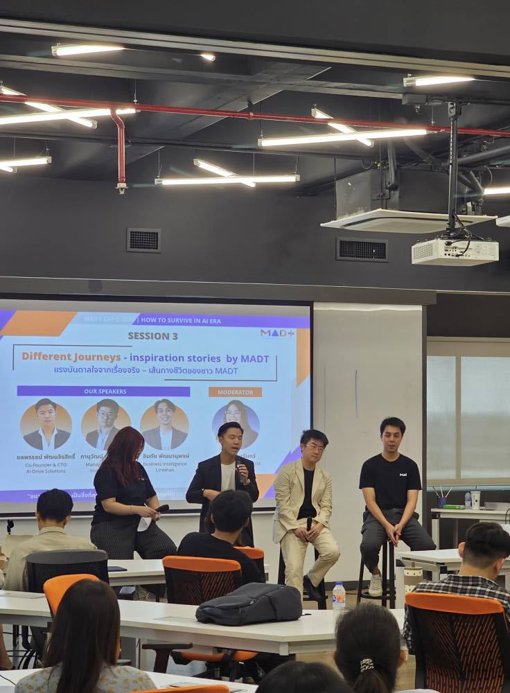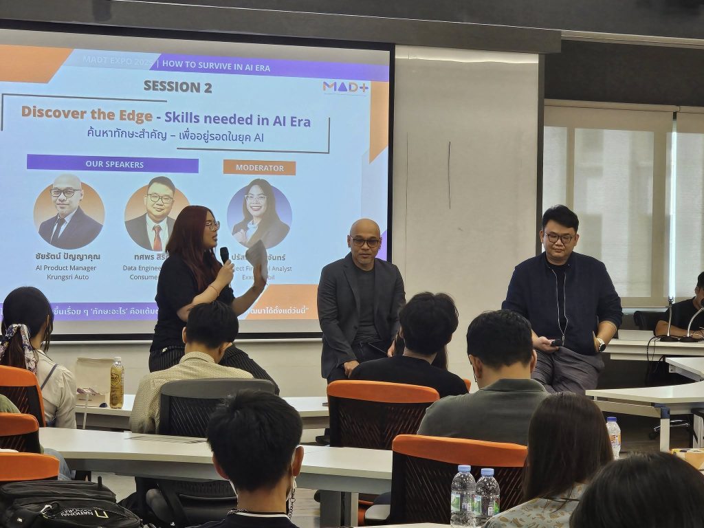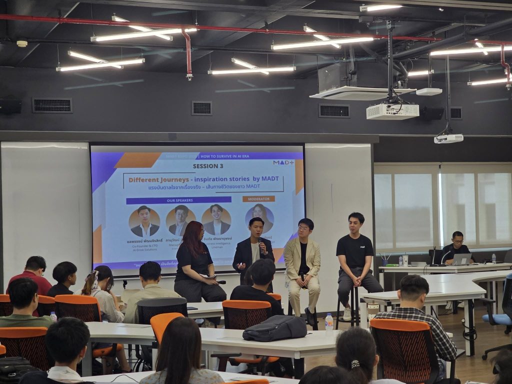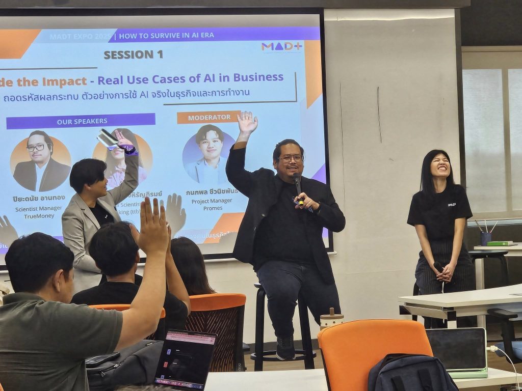 วันเสาร์ที่ 2 สิงหาคม 2568 นักศึกษาหลักสูตรการจัดการวิเคราะห์ข้อมูลและเทคโนโลยีข้อมูล (MADT) ได้จัดกิจกรรม MADT Expo 2025 ภายใต้แนวคิด “How to Survive in AI Era” ณ GSAS SM@RT Lab ชั้น 4 อาคารสยามบรมราชกุมารี สถาบันบัณฑิตพัฒนบริหารศาสตร์
