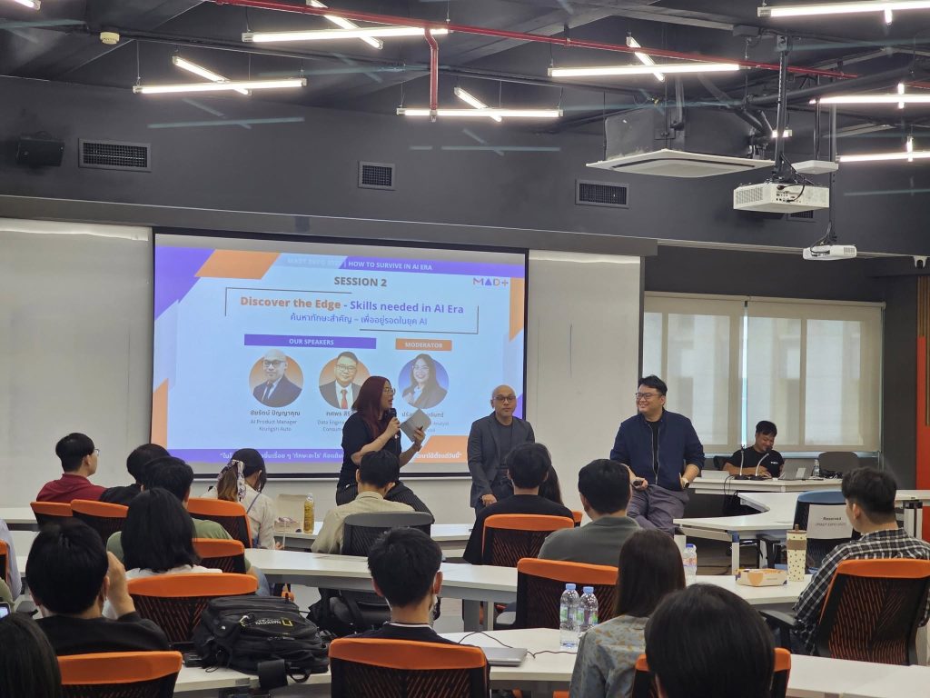 ในโลกที่ AI ก้าวหน้าไปเรื่อย ๆ ทักษะอะไรคือแต้มต่อสำคัญ? มาฟังการแชร์ทักษะด้าน AI, Data, และ Soft Skills ที่จำเป็นในยุค AI และวิธีพัฒนาทักษะเหล่านี้ให้พร้อมสำหรับอนาคต รวมถึงการสร้าง Hybrid Skills เพื่อให้คุณก้าวนำเทคโนโลยีในทุกภาคธุรกิจ