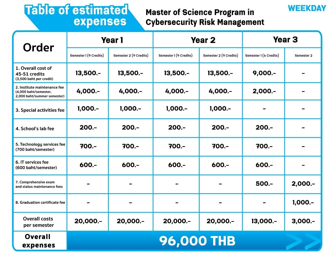 The Master of Science Program in Cybersecurity Risk Management is an integration of fields in information security and technology risk management under the computer science program together with laws under the law program. This is to create a new and modern program that responds to the needs of the workforce market and rapidly changing global trend. Additionally, it integrates resources and personnel in education to work in multidisciplinary fields in order to create new knowledge.