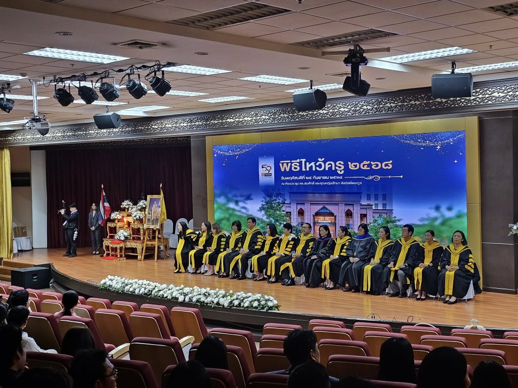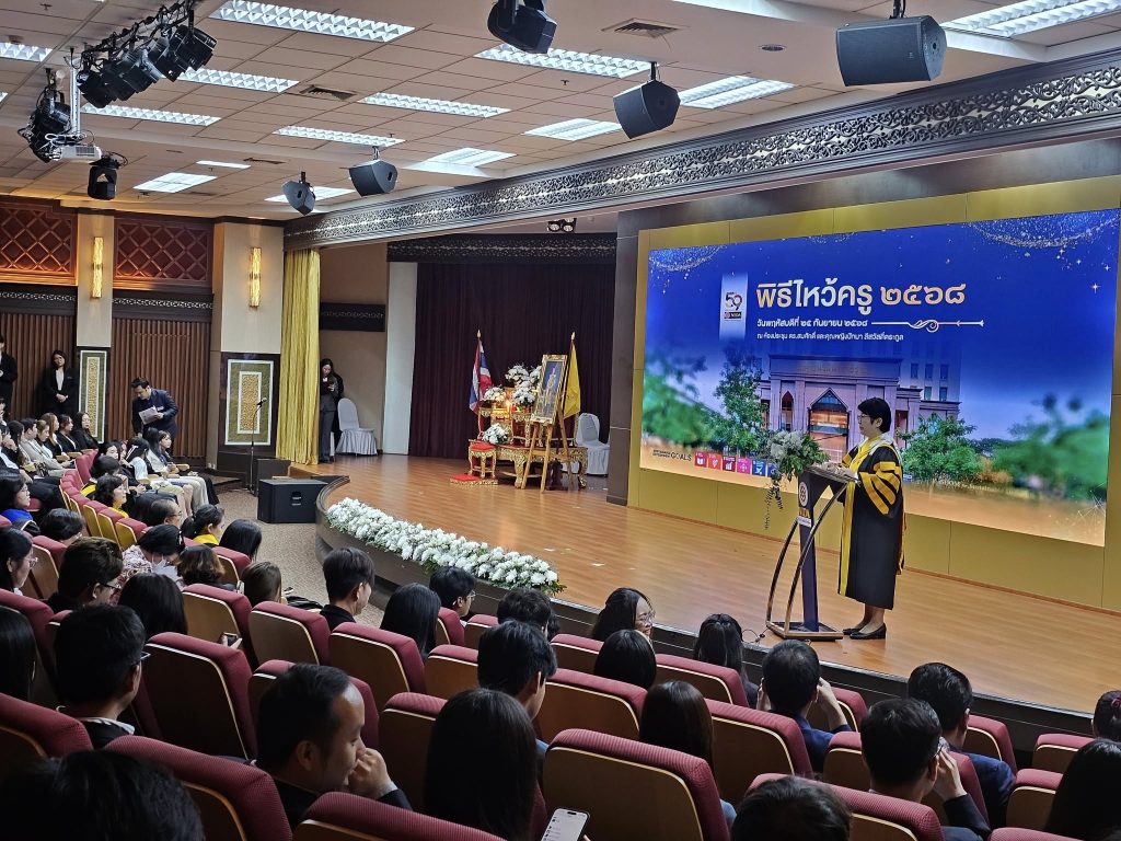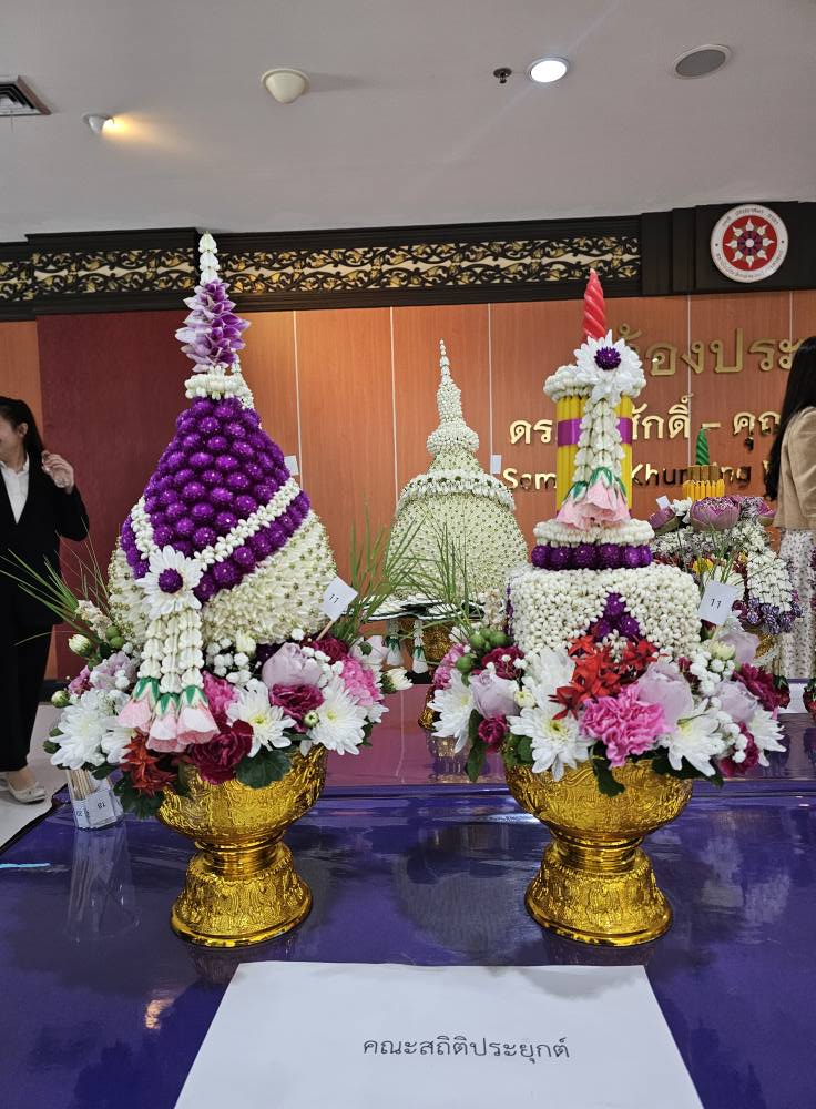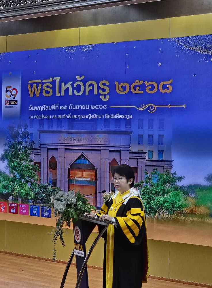 อาจารย์ ดร.ศิวิกา ดุษฎีโหนด คณบดี คณะสถิติประยุกต์ และ ผศ.ดร.ธิฏิรัตน์ พิมลศรี อาจารย์ที่ปรึกษากิจกรรม ได้เข้าร่วมพิธีไหว้ครู ประจำปี 2568 เมื่อวันพฤหัสบดีที่ 25 กันยายน 2568 ณ ห้องประชุม ดร.สมศักดิ์และคุณหญิงปัทมา ลีสวัสดิ์ตระกูล
