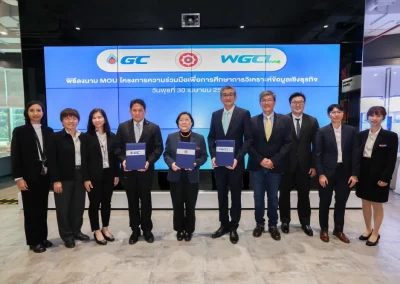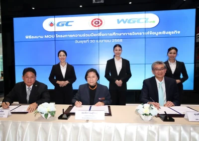 วันพุธที่ 30 เมษายน 2568 อาจารย์ ดร.ศิวิกา ดุษฎีโหนด คณบดีคณะสถิติประยุกต์ เข้าร่วมพิธีลงนามบันทึกข้อตกลงความร่วมมือ (MOU) โครงการศึกษาการวิเคราะห์ข้อมูลเชิงธุรกิจ ร่วมกับบริษัท พีทีที โกลบอล เคมิคอล จำกัด (มหาชน) หรือ GC และ บริษัท ดับบลิวเอชเอ จีซี โลจิสติกส์ จำกัด (WGCL)