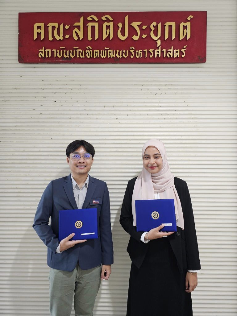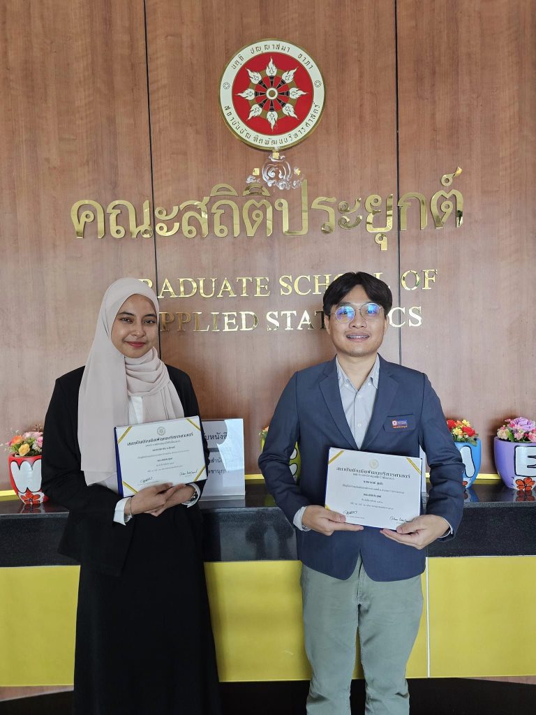 ตัวแทนนักศึกษาผู้ได้เกียรติบัตร จากหลักสูตรวิทยาศาสตรมหาบัณฑิต สาขาวิชาการวิเคราะห์ข้อมูลและวิทยาการข้อมูล เข้าร่วมจำนวน 2 คน ได้แก่