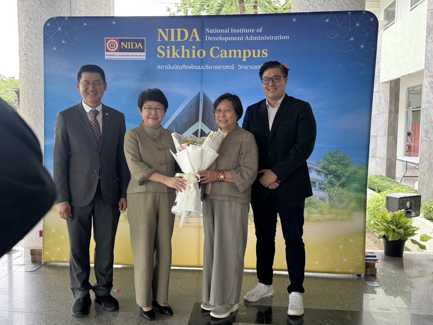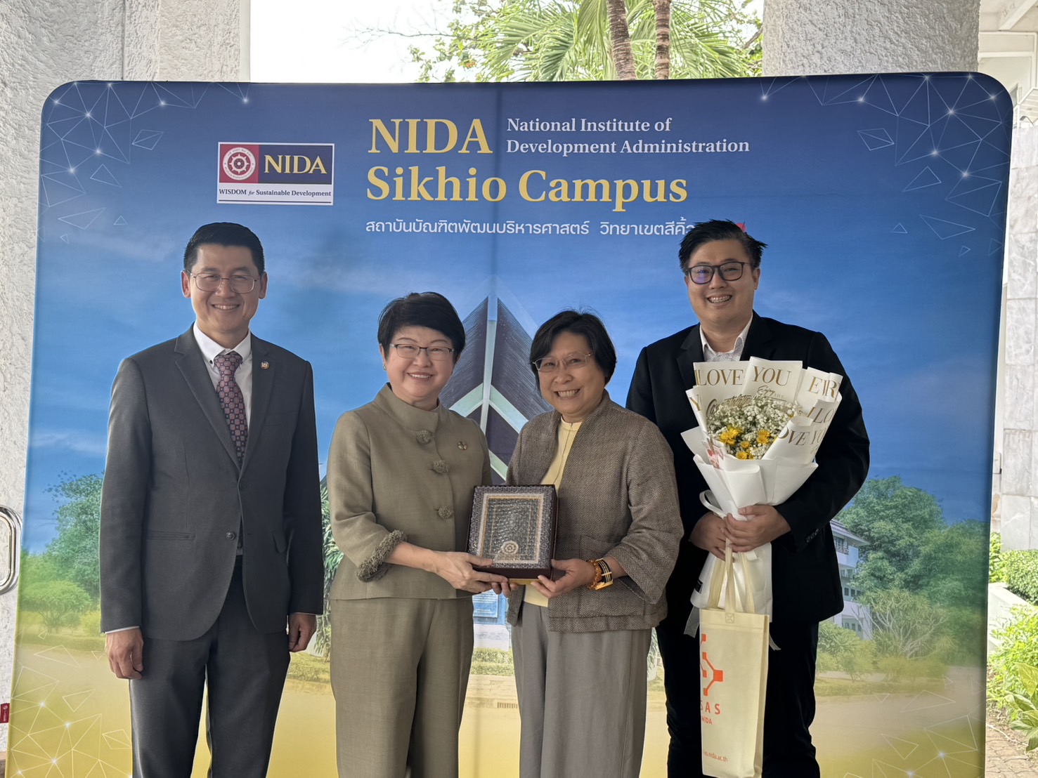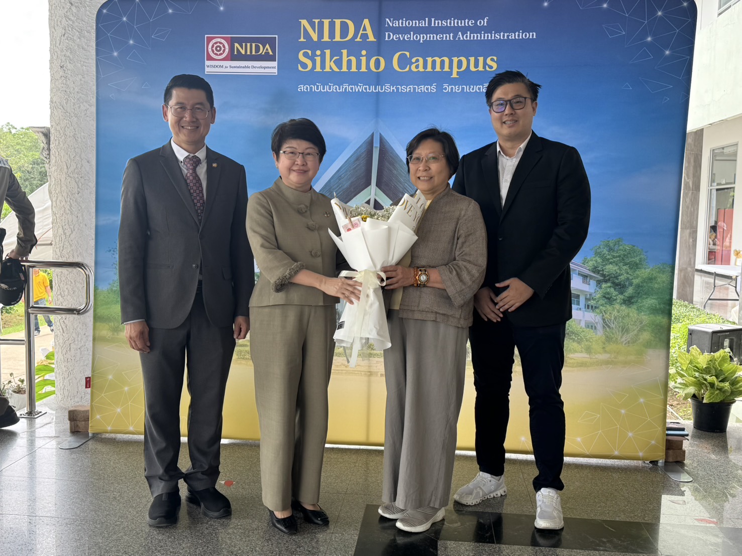 วันพฤหัสบดีที่ 12 มิถุนายน 2568 อาจารย์ ดร.ศิวิกา ดุษฎีโหนด คณบดีคณะสถิติประยุกต์ พร้อมด้วยรองศาสตราจารย์ ดร.สราวุธ จันทร์สุวรรณ รองอธิการบดีฝ่ายบริหารและเทคโนโลยีดิจิทัล, ผู้ช่วยศาสตราจารย์ ดร.อัครนันท์ พงศธรวิวัฒน์ ผู้อำนวยการสำนักเทคโนโลยีดิจิทัลและสารสนเทศ และรองศาสตราจารย์ ดร.ปราโมทย์ กั่วเจริญ ผู้อำนวยการสำนักบรรณสารการพัฒนา ได้เข้าร่วมการเปิดตัว “สถาบันบัณฑิตพัฒนบริหารศาสตร์ (นิด้า) วิทยาเขตสีคิ้ว” อย่างเป็นทางการ