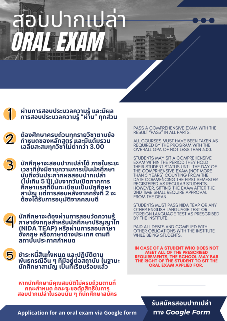 กำหนดการสอบประมวลความรู้ การสอบปากเปล่า และการสอบคุณสมบัติ ประจำปีการศึกษา 2569 Click Here ประกาศกำหนดการฯประกาศคณะสถิติประยุกต์ สถาบันบัณฑิตพัฒนบริหารศาสตร์ เรื่อง การสอบประมวลความรู้ (Comprehensive...